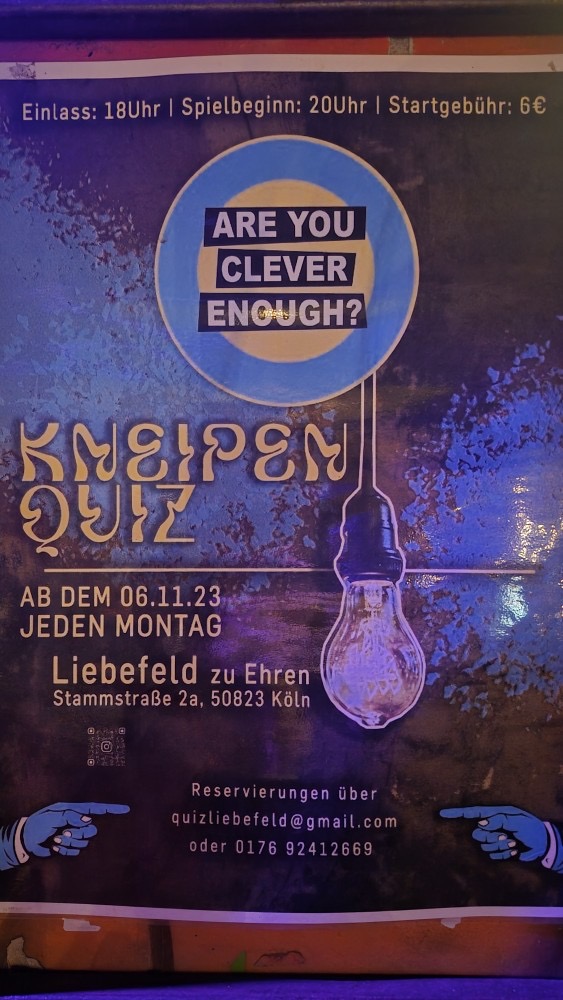 In diesem Jahr haben wir gemeinsam an einem Kneipenquiz im Liebefeld teilgenommen und uns in 2 Teams aufgeteilt. Wir waren den ganzen Abends so beschäftigt, dass wir währenddessen nicht mal Fotos gemacht haben. Vielleicht lag es aber auch am strikten Handyverbot 🙂